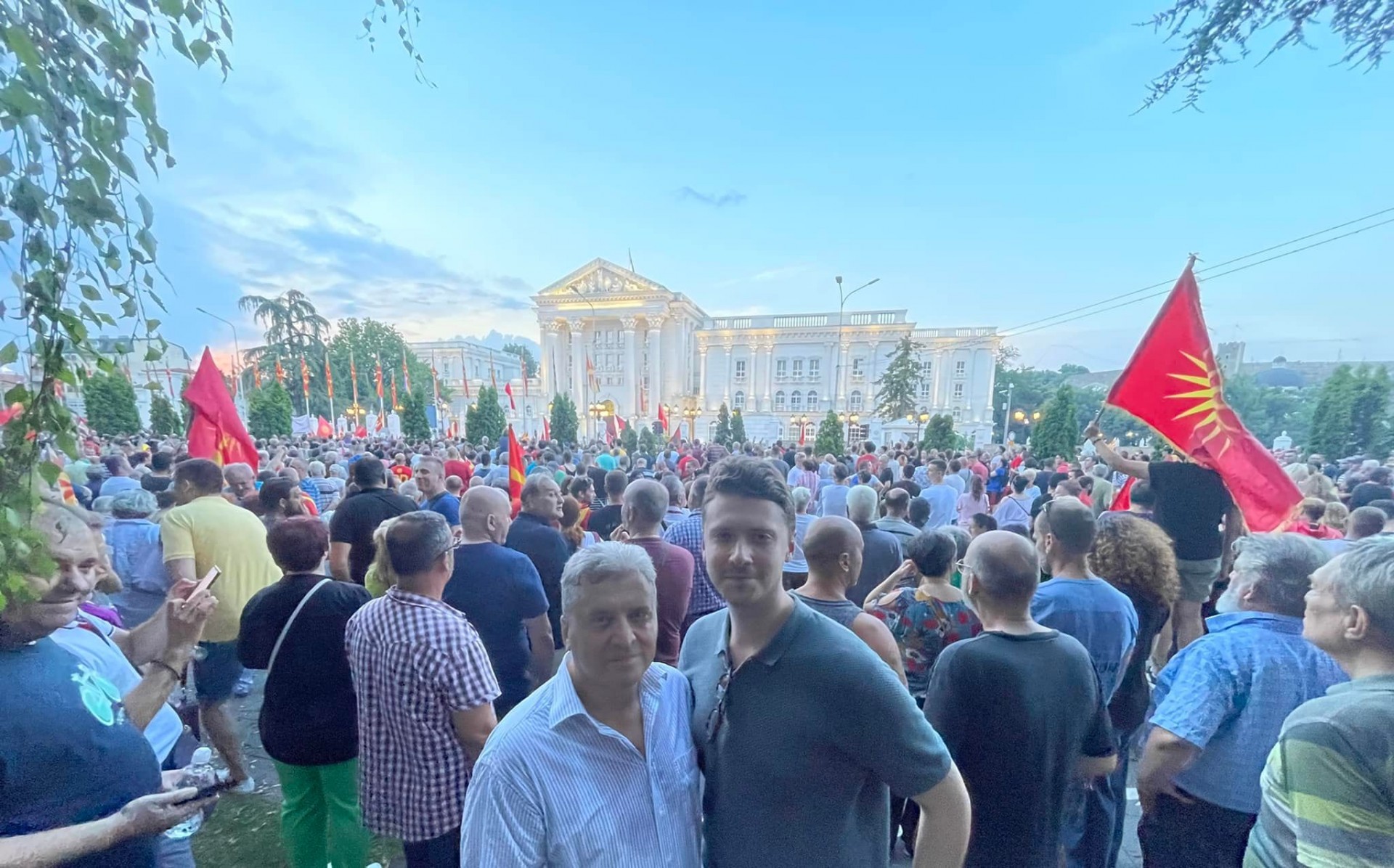 Поранешниот претседател на Македонија, Ѓорѓе Иванов, заедно со својот син Иван Иванов денеска зедоа учество на протестот пред Владата по повод францускиот предлог за отпочнување на евроинтеграциите и прифаќање на условите наметнати од Бугарија.