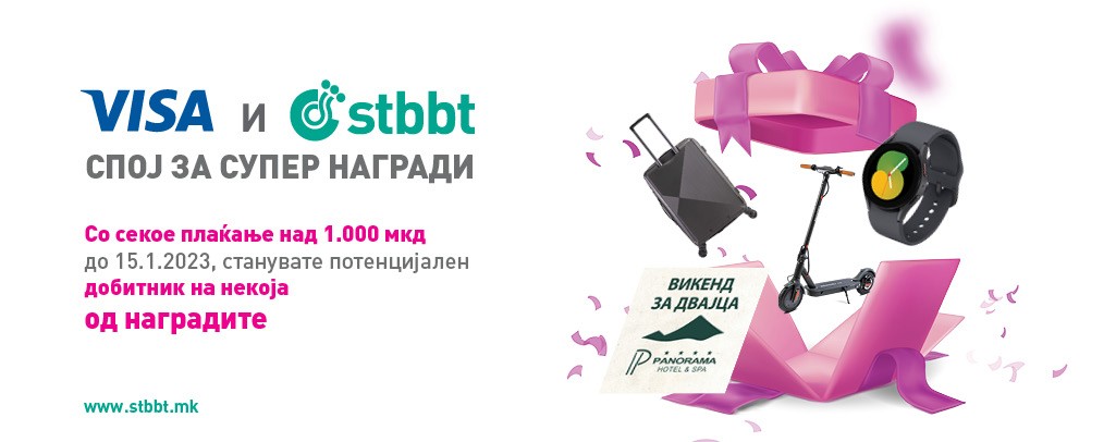 До 15.01.2023, сите физички лица, корисници на Visa Debit и/или Visa Credit ( Classic и/или Gold) картички на Стопанска банка а.д. Битола кои ќе извршат барем една трансакција на ПОС терминал (физички или виртуелен односно e-commerce) во износ еднаков или поголем од 1.000,00 денари стануваат потенцијален добитник на некоја од наградите.