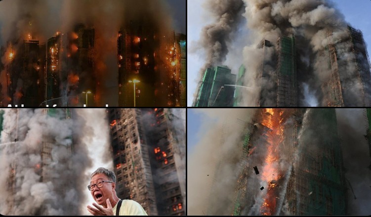 Драматичните снимки од областа Таи По во Хонг Конг покажуваат густи облаци од чад и пламен што излегуваат од неколку кули на станбената зона Ванг Фук Корт.