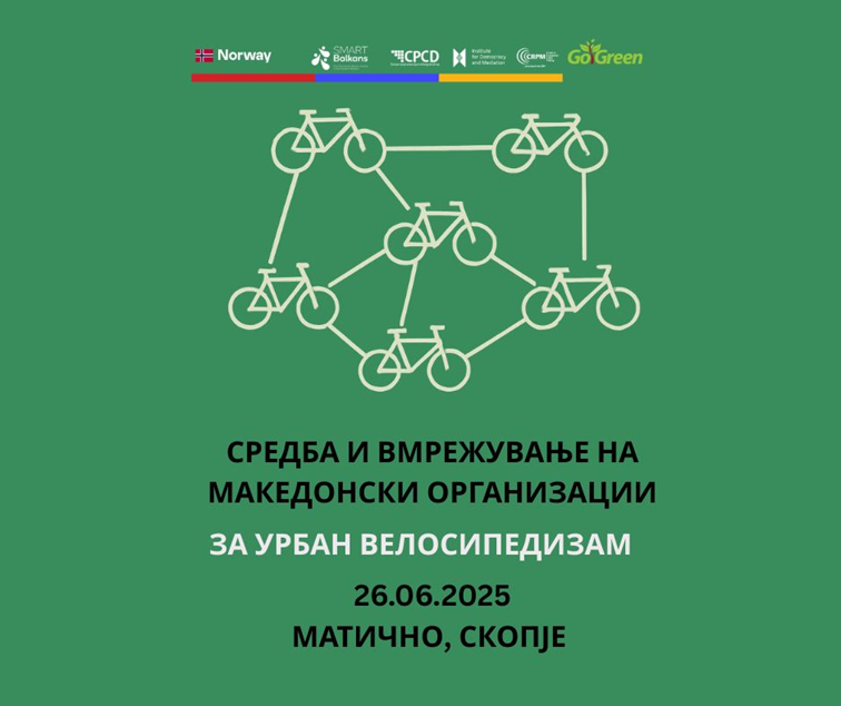 За да го поддржи овој позитивен развој, Здружението за одржлив развој и заштита на животната средина „Гоу Грин“ од Скопје организира средба за вмрежување на организации, иницијативи и поединци активни во областа на урбаниот велосипедизам.