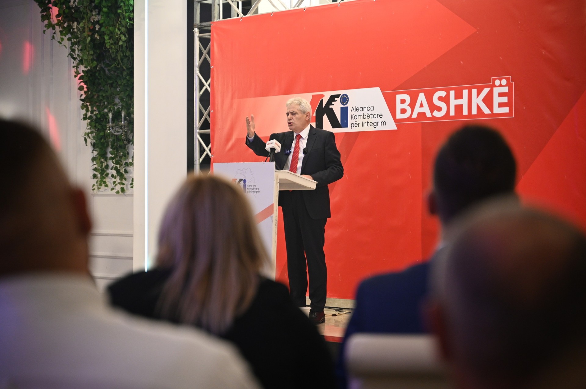 Лидерот на ДУИ Али Ахмети заедно со неговите коалициони партнери го отворија изборниот штаб во Тетово, од каде повторно испрати порака до премиерот Христијан Мицкоски, овојпат, со закана дека ако Македонија не го продолжи патот кон ЕУ, граѓаните ќе се приклучат дел кон Албанија, дел кон Бугарија.