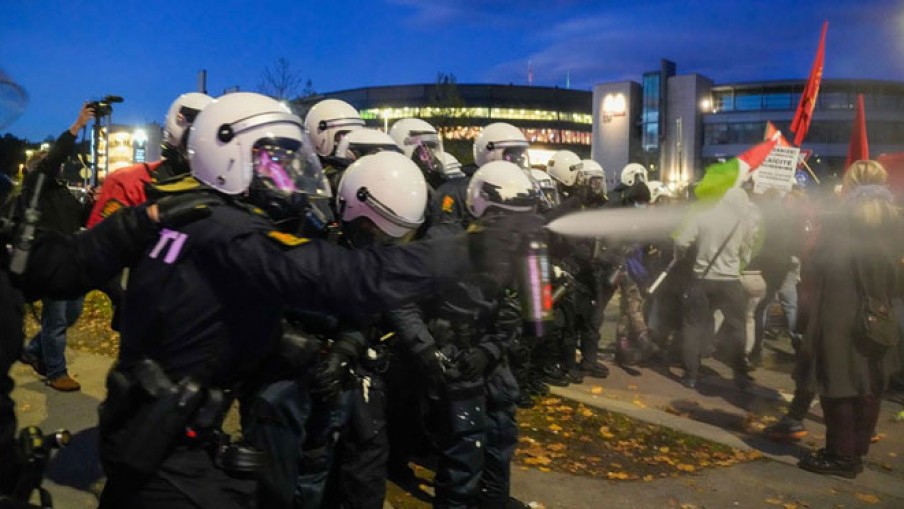 Квалификацискиот фудбалски натпревар за Светското првенство меѓу Норвешка и Израел во Осло беше нарушен со протести и силно обезбедување, вклучително и употреба на солзавец, соопшти полицијата.