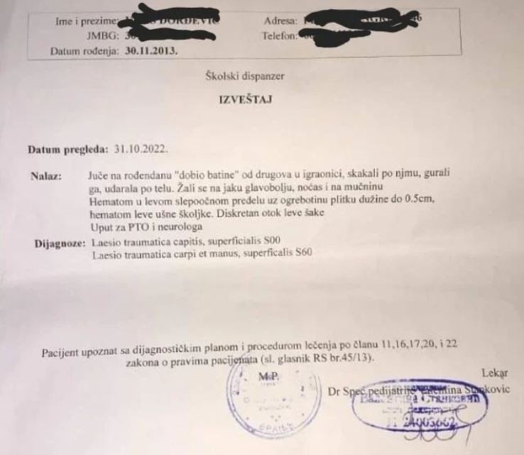 "Мојот син сега има сериозни трауми и стравови, постојано крева раце кога му приоѓам како да се брани од нешто. Сè кулминираше со инцидент во игротеката, кога момчето беше физички малтретирано од цела група деца за време на речиси целата прослава.