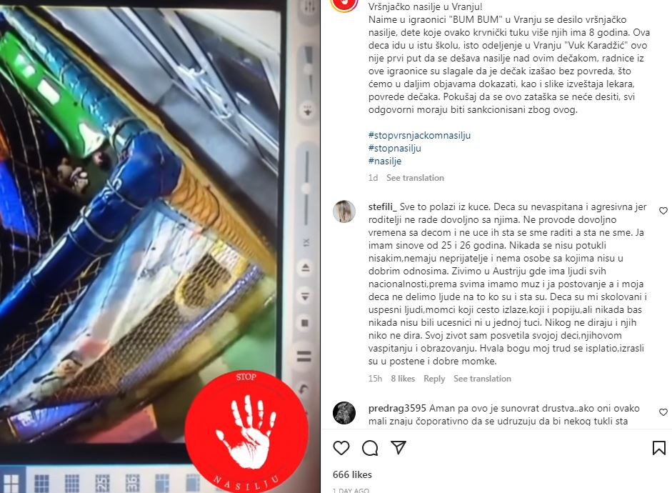 - Го оставив и излегов по работата и се шокирав кога ми кажа дека го турнале, го удриле и скокнале врз него. Се сокрил во тоалетот, но не можел да го избегне насилството. Работничката во игротеката, кога дојдов да го земам детето, со насмевка ми рече дека се е во ред, освен една мала „закачка“. Меѓутоа, кога инсистирав да ги погледнам снимките од камерите, на ужас открив дека мојот син бил малтретиран два и пол часа - вели Јелена вознемирено и се прашува дали во такви објекти можат да работат луѓе без соодветни квалификации.