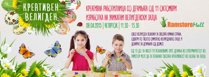 Посетителите на Рамстор Мол, ќе добијат можност во живо да го следат и да се вклучат во креативниот процес на создавање на велигденските јајца, да си купат јајце и со тоа да донираат во специјалната кутија за донации која ќе биде поставена во трговскиот, а средствата ќе бидат наменети за децата и домот. Во рамки на Велигденските активности истиот ден од 13 до 19 часот сите дечиња добиваат можност во супермаркетот во Рамстор Мол да ја покажат својата креативност во боење на јајца.