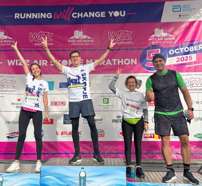 Како дел од Тимот на делегацијата на ЕУ во Северна Македонија, тимот на Шпанија не можеше да го пропушти скопскиот маратон! Многу пријатна и здрава трка!, напиша тој.