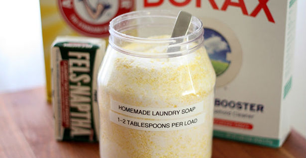 Сапунот изрендајте го и сипете го во лонец со врела вода (околу 500 мл). Кога се излади додајте го етеричното масло. Измешајте ја добиената смеса со боракс и сода. Вашиот прашок е готов!