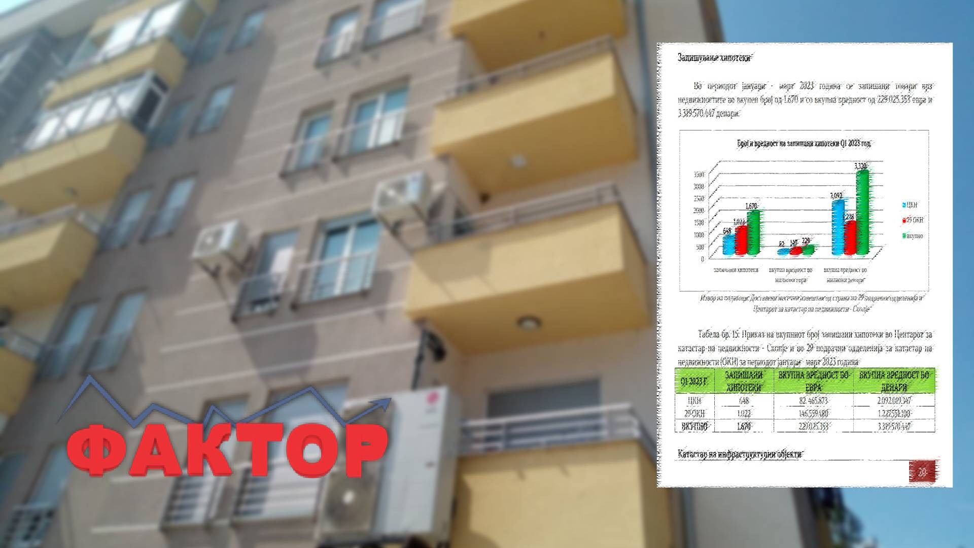 И најновите податоци покажуваат дека продолжува трендот на раст на вредноста на имотите ставени под хипотека. Според последните податоци од Агенцијата за катастар на недвижности, во првите три месеци од годинава, вкупната вредност на имотите ставени под хипотека надминува 380 милиони евра. Притоа под хипотека се ставени вкупно 2.596 имоти.