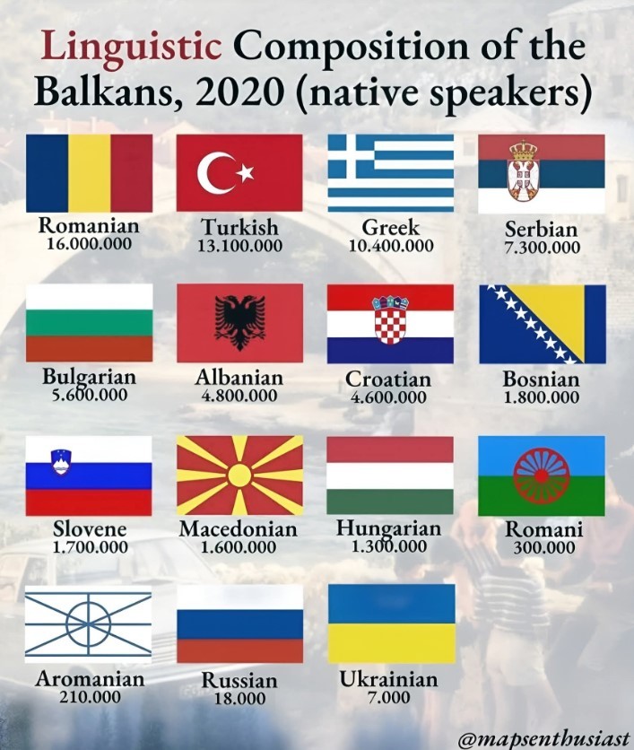 На социјалните мрежи се појави интересен инфографик со наслов „Јазична структура на Балканот 2020 (мајчин говорник)“, на кој се прикажува бројот на говорници на јазици на Балканот.
