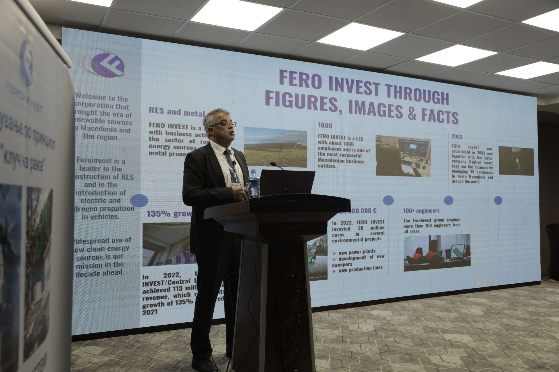 На советувањето на здружението на професионалци, инженери, универзитетски професори и компании од енергетскиот сектор во Македонија, МАКО CIGRE, ФЕРОИНВЕСТ одржа и посебна корпоративна презентација на која ги запозна присутните со сите проекти за кои компанијата нуди решенија ,,клуч на рака”, за батериски системи, фотонапонски електрани, мали хидроелектрани, биогасни електрани, производство на трафостаници, со комплетно вклучено проектирање, изведба, одржување и откуп на електричната енергија.