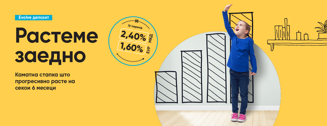 Искористете ги предностите на новиот Evolve депозит, каматна стапка која расте на секои 6 месеци и почнете да штедите.