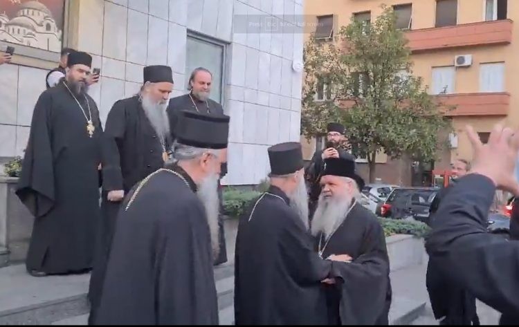 Патријархот на СПЦ Порфириј утрово ја пречека делегацијата на „Охридската архиепископија“ предводена од архиепископот Стефан во близина на храмот на Свети Сава во Врачар.