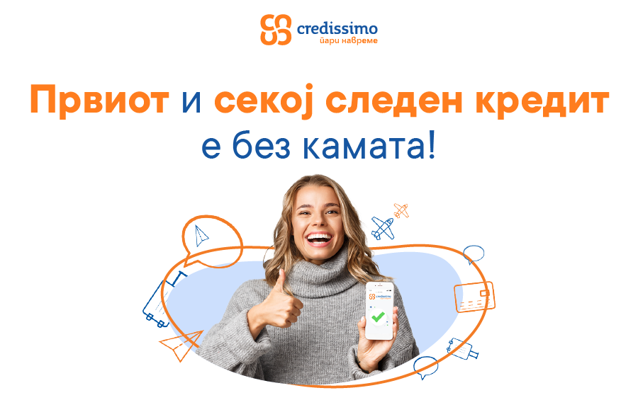 Но празниците, освен радост и среќа, исто така претставуваат и финансиско оптоварување, затоа Credissimo ја започнува новата година со одлична промоција – бескаматен кредит за сите нови и постоечки клиенти. Да, добро прочита! Бескаматен кредитза максимално уживање во празниците, но и за сите непредвидени трошoци кои ги носи овој период со себе. Земи бескаматенкредит до 30.000 ден., отпатувај некаде со твоето семејство, креирај нови спомени, живеј убави моменти, а кредитот врати го без камата и трошоци!