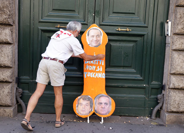 А Силвио, Силвио си го прави тоа што го знае најдобро, ветува мед и млеко и борба против Германците и ветува дека ќе ги намали даноците а парите кои Монти ги зел на народот ќе ги врати по пошта.