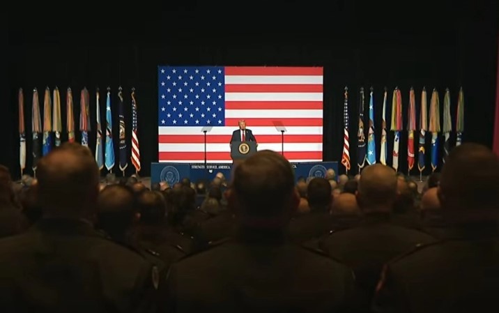 Трамп се повика на генерали како Џорџ С. Патон, Омар Бредли и Даглас Макартур, истакнувајќи дека „заедно го разбудуваме воинствениот дух“.