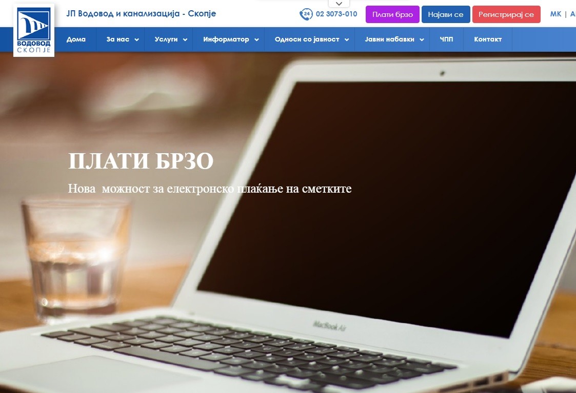ЈП Водовод и канализација – Скопје воведе нова web услуга за електронско плаќање - ПЛАТИ БРЗО