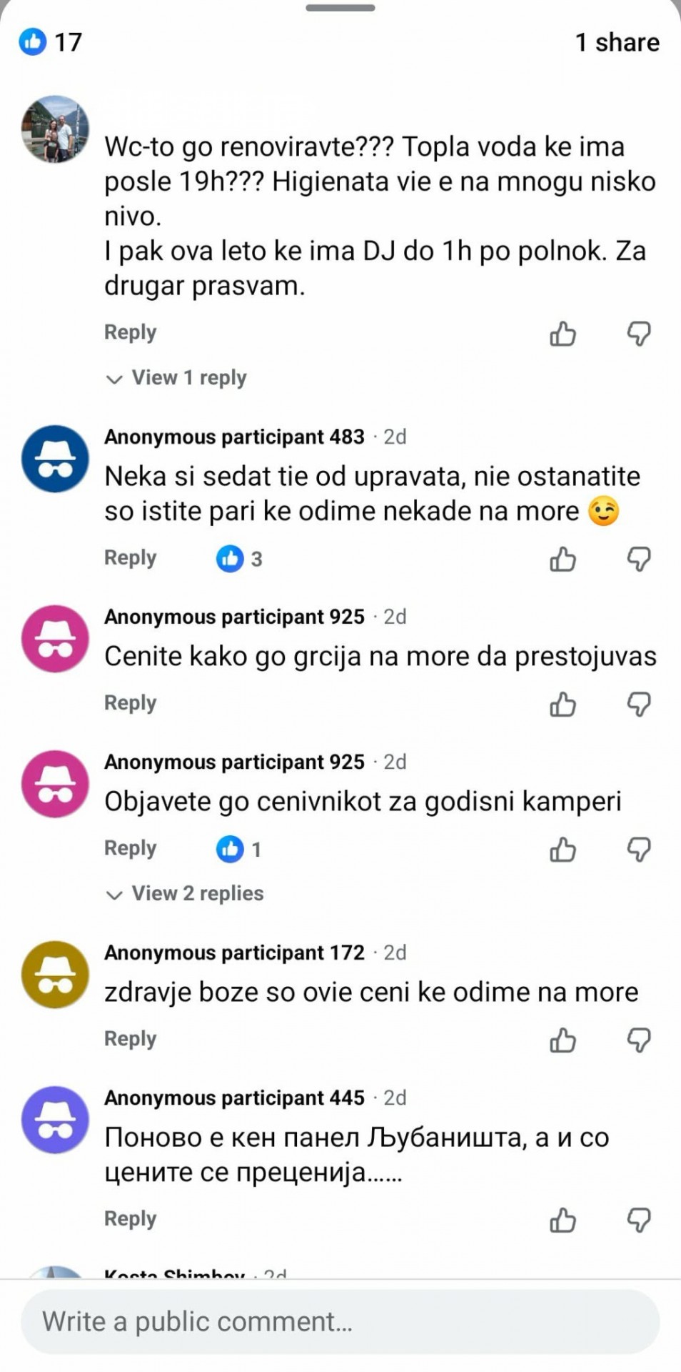 Според граѓаните, цените се преголеми. Во коментари на објавата, пишува дека за тие пари ќе престојуваат некаде на море.