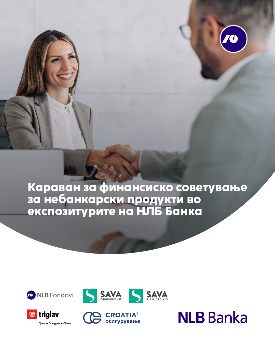 Караванот продолжува и во наредниот период во експозитурите на НЛБ Банка низ земјава, во соработка со партнерите Сава Осигурување, Кроација Осигурување Живот, Сава Пензиско Друштво, Триглав Осигурување Живот и НЛБ Фондови, со цел да им овозможи на клиентите сеопфатна едукација, стручно советување и детални информации за сите небанкарски финансиски продукти кои се нудат преку НЛБ Банка.