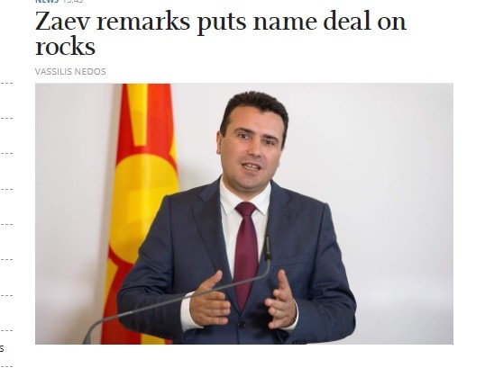 Oд весникот Катимерини испратиле прашања до владиниот портпарол Миле Бошњаковски - дали Заев навистина споменал „Македонци во Егејска Македонија“ и нивното право да учат на македонски и дали неговите коментари укажуваат на постоење на македонско малцинство во Грција. Бошњаковски, вели Катимерини, одговорил дека според Преспанскиот договор, јазикот на неговата земја спаѓа во групата јужнословенски јазици и дека ќе стане официјален јазик на Европската Унија кога Македонија ќе му се приклучи на блокот.