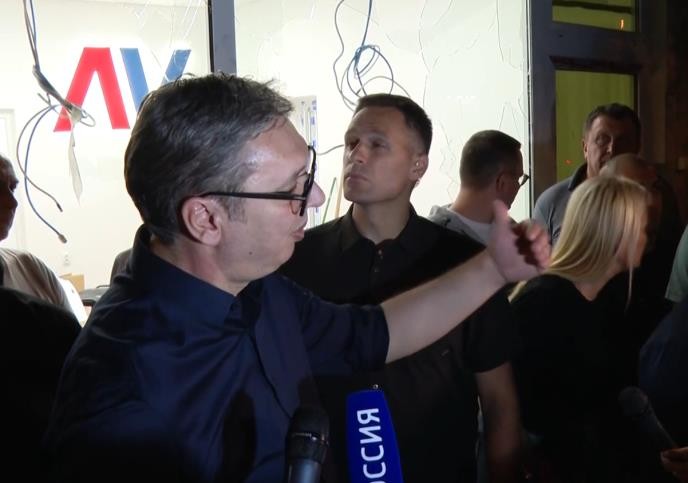 „Тие се лути, немаат што друго да понудат. Единственото нешто што го знаат е да рушат. Единственото нешто што го знаат е да палат и да убиваат. Ќе продолжиме да се бориме, да работиме. Да се бориме за нашата Србија и за нашата партија“, вели тој.