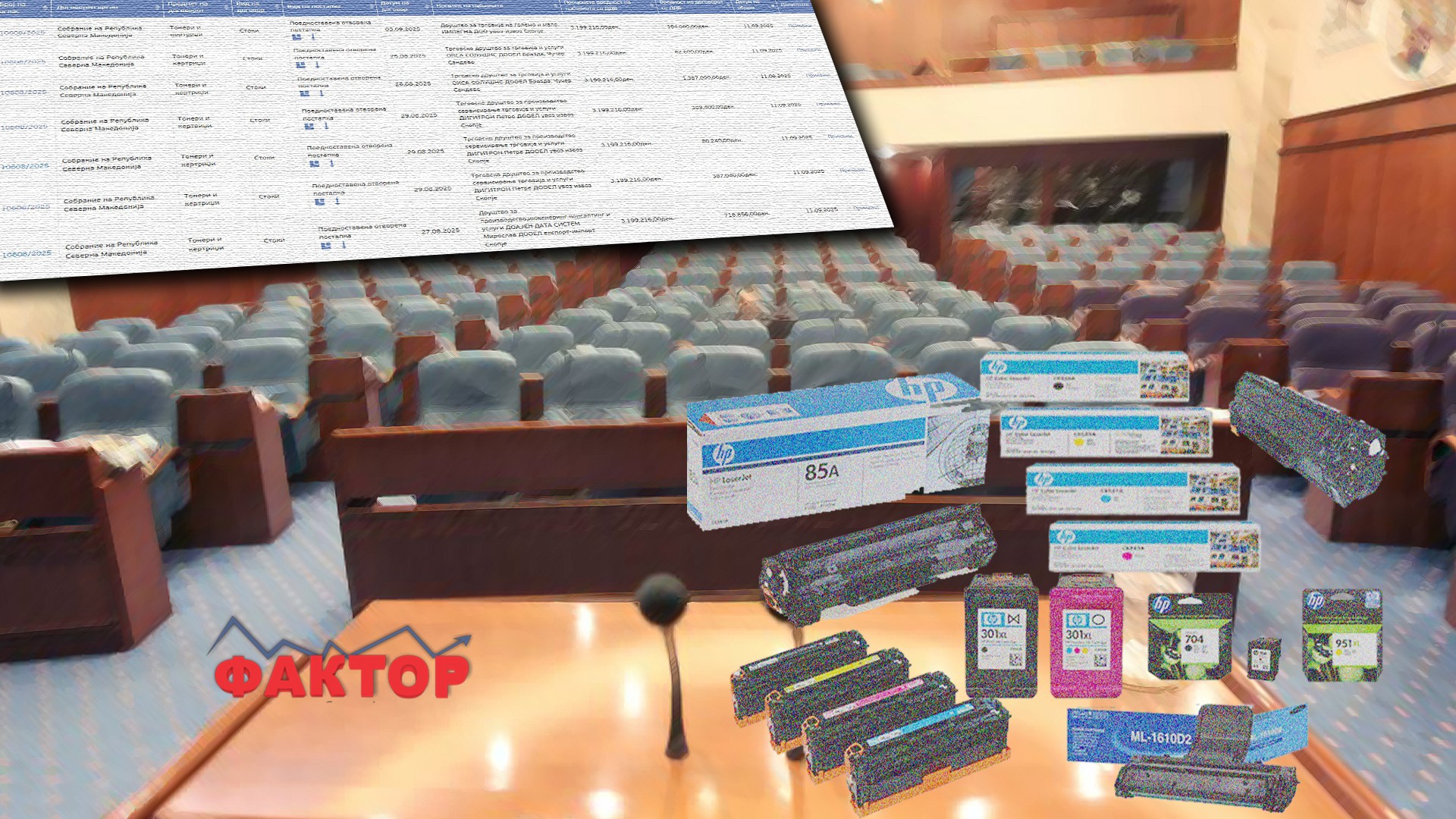 Не еден тендер поделен на седум дела, четири компании ќе си поделат над 3 милиони денари или 52 илјади евра за тонери и кертриџи за потребите на Собранието.
