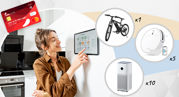 Во периодот од 15.11.2022 до 31.12.2022, ИутеКредит Mastercard им овозможува на своите клиенти да станат добитници на “SMART” награди како електричен велосипед, роботска правосмукалка или пак прочистувач за воздух.