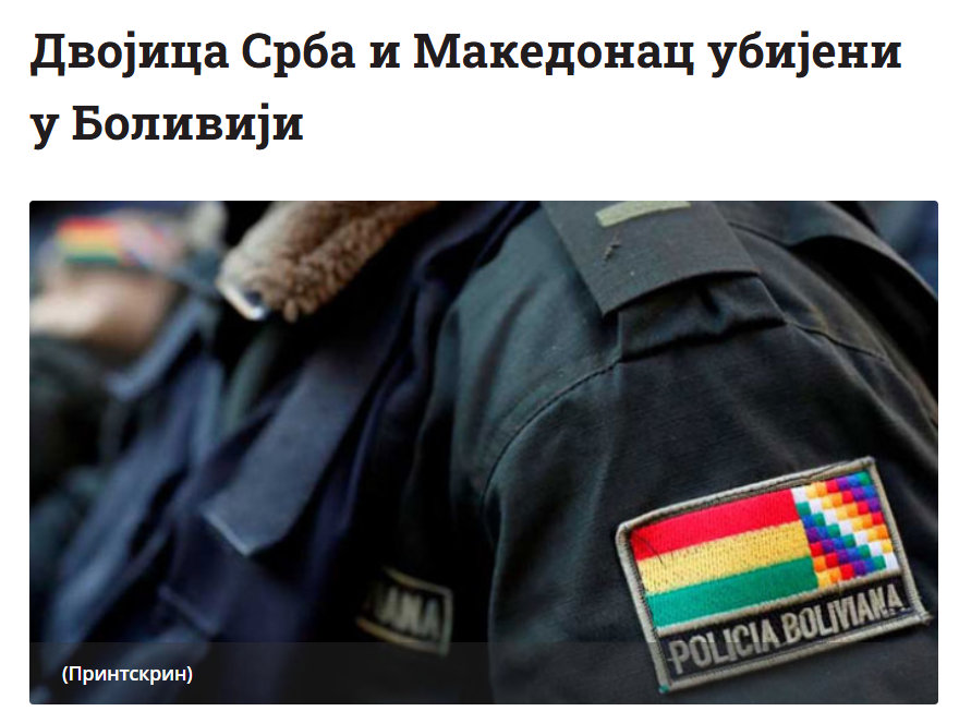 Шокантно тројно убиство ја потресе јавноста во регионот, откако во Боливија беа пронајдени телата на еден македонски и двајца српски државјани, спакувани во црни пластични ќеси. Според неофицијалните информации што ги пренесува белградска „Политика“, сите тројца биле брутално мачени пред да бидат ликвидирани.