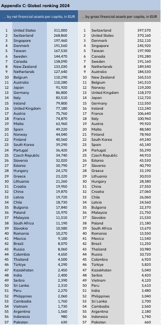 Со нето финансиски средства во 2024 година од 19.950 евра по глава на жител, Хрватска е рангирана на 31-во место на глобалната ранг-листа на „Алијанц“ за најбогатите земји, предводена од САД, според Извештајот за глобално богатство на „Алијанц“ објавен во четврток, пренесува „Пословни Дневник“.