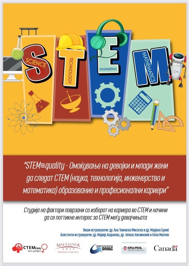 Македонија 2025, во партнерство со Фондацијата Ана и Владе Дивац oд Србија, произведе/промовира компаративна студија на фактори поврзани со изборот на кариера во СТЕМ и начини дасе поттикне интерес за СТЕМ меѓу девојчињатанасловена “STEM≡quality – Омоќување на девојки и млади жени да следат СТЕМ (наука, технологија, инженерство и математика) образование и професионални кариери”. Во овој документ се прикажani резултатите од истражувањето чија цел беше да се поттикне, преку презентација на успешни примери, изборот на кариера во СТЕМ кај ученичките од основните училишта од Македонија и Србија. Во студијата ја истакнуваме важноста на: (а) раните интервенции за зголемување на привлечноста на кариерата во СТЕМ бидејќи младите девојки ги ставаат своите интереси и желби како еден од најважните фактори при изборот на кариера; (б) улогата на образовниот систем не само во развивањето знаења и вештини, туку и самодоверба за кариера во СТЕМ; (в) создавање систем за поддршка за младите девојки за да го негуваат својот интерес за СТЕМ. Интервенциите за намалување на родовиот јаз во СТЕМ треба да бидат повеќенасочни и да вклучуваат промени во формалното образование во однос на промени на наставните програми за да се промовира улогата на жените во СТЕМ, да се изградат повеќе вештини и да се зајакне довербата поврзана со поседување вештини и создавање подобар систем за поддршка на кариерното советување и поддршка.