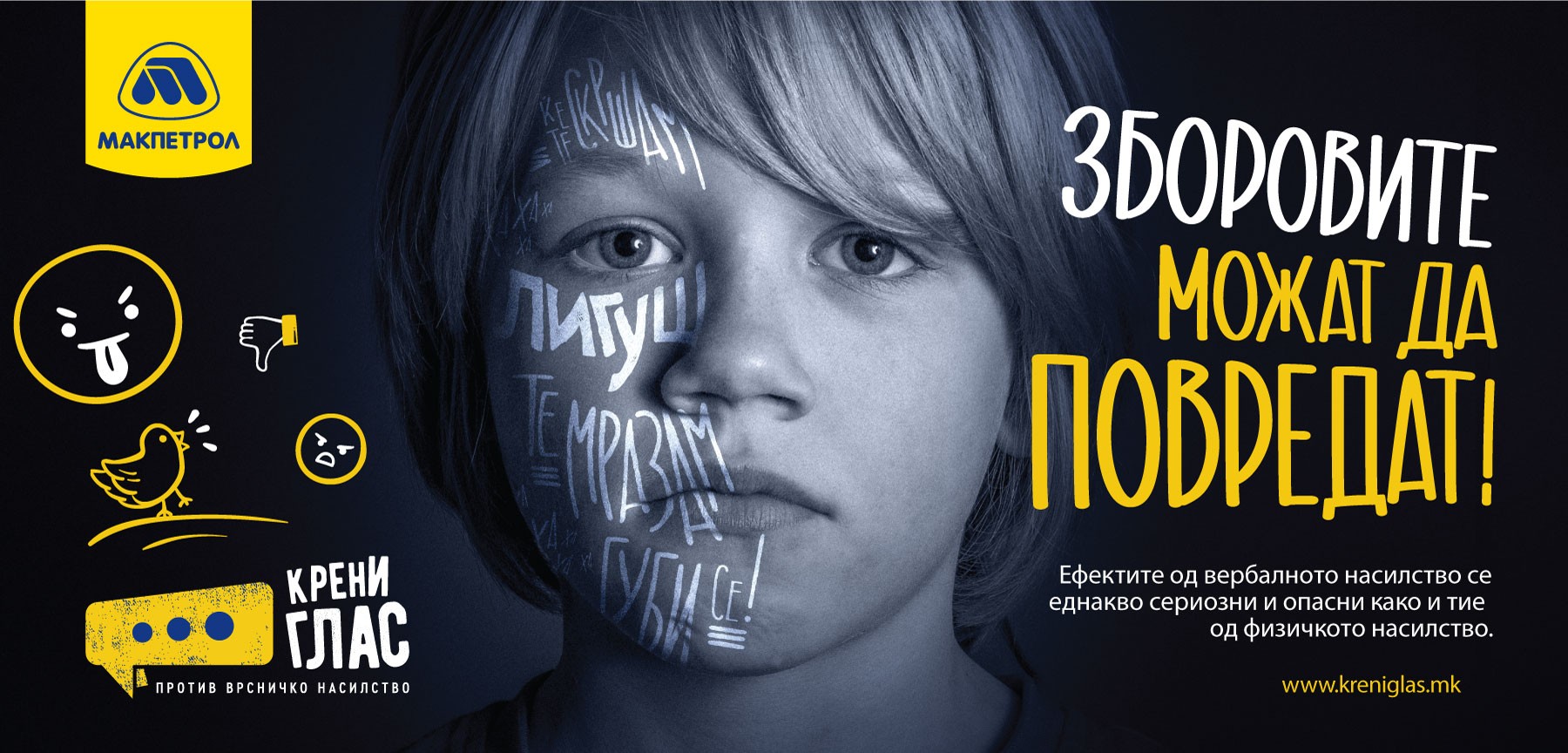 Физичкото, вербалното, односно, психичкото, социјалното и сајбер-насилството се дел од животот на децата во Македонија, уште од најрана возраст. Ваквото секојдневие изминативе години е потврдено од низа истражувања, а случаите за кои што медиумите често известуваат, потврдуваат оти состојбата со овој проблем полека станува алармантна. Со цел да укаже на важноста на оваа горлива тема, но и да понуди пат како постепено да се дојде до решение, „Макпетрол“ ја отпочна едукативната кампања „Крени глас против врсничкото насилство“.