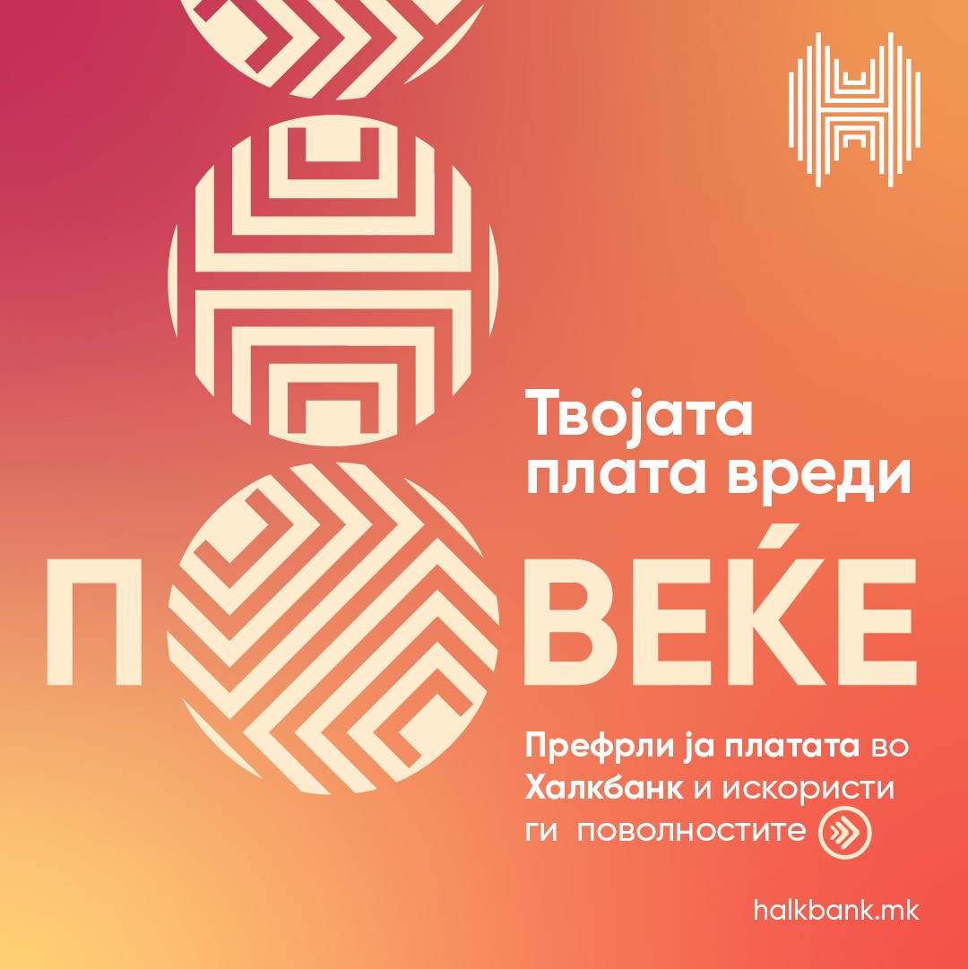 Затоа, доколку сега се вработувате изберете ја Халкбанк и искористете ги бенефициите предвидени за примателите на плата преку Банката. Истото ќе го добиете и доколку направите паметен избор и својата плата ја префрлите во Халкбанк.
