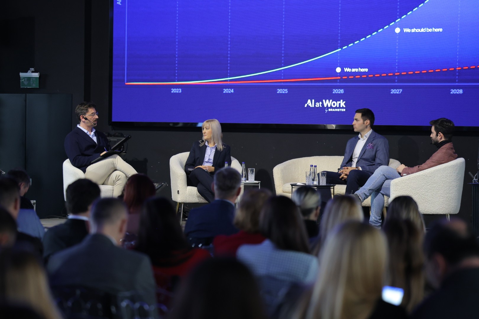 На панел-дискусијата посветена на тоа како ВИ веќе го трансформира ИКТ-бизнисот во Македонија, учествуваа: Петар Ниновски основач на Бреинстер, Благица Трпезановска извшен директор на Kuehne+Nagel Macedonia, Иво Павловски, Кеативен директор на Division и Тони Јанкуловски Директор за развој и иновации во Дајнерс.