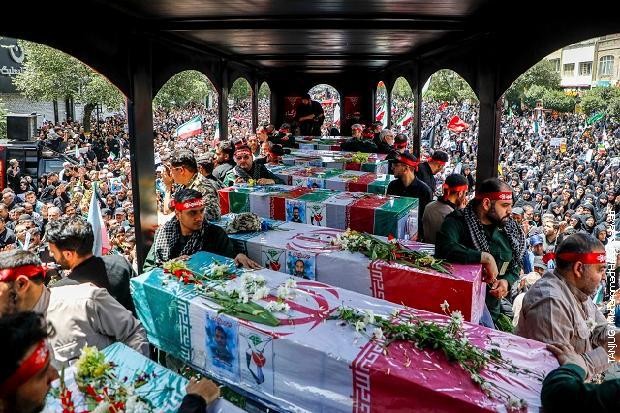 Многу граѓани поставија лични предмети на телата на загинатите како знак на почит и верба во жртвата што ја дадоа „за Иран, револуцијата и системот“.