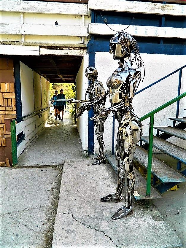 Метални скулптури во овека форма осамнаа изложени во спортско-рекреативниот центар Матка кај реката Треска.
