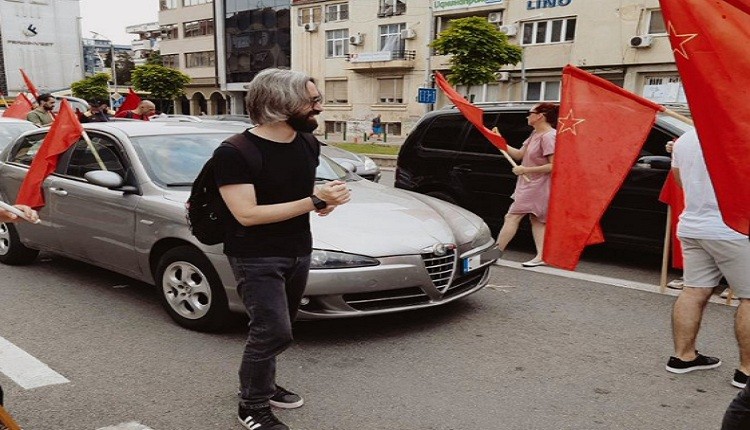 Ми се расипа Алфата пред Влада, пишува на Твитер лидерот на Левица, Димитар Апасиев, кој се приклучи на блокадата пред Владата.