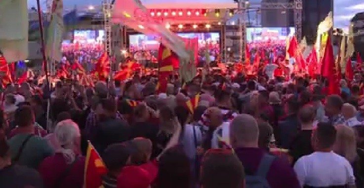 „Тука сме собрани оваа вечер илјадници, реки граѓани, исправени, со име, со чест, со пркос, со волја која мора да донесе промени. Никогаш Македонија не видела толку многу болка како овие години“, рече Мицкоски.