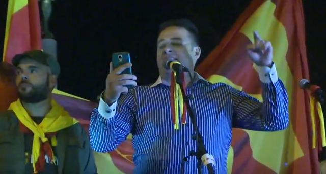 Дарко Мијалковски од иницијативата „За заедничка Македонија“ на протестот пред Собранието вечерва упати низа прашања кон комесарот Јоханес Хан.