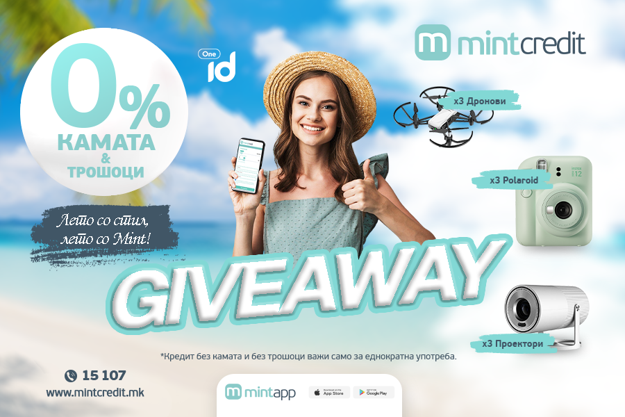 Летото е време за авантури, нови спомени и уживање без грижи. А што ако ти кажеме дека ова лето може да биде уште повозбудливо? Со Mint Credit не само што добиваш кредит со 0% камата и трошоци, туку и можност да добиеш неверојатни подароци кои ќе ти го разубават секој ден.