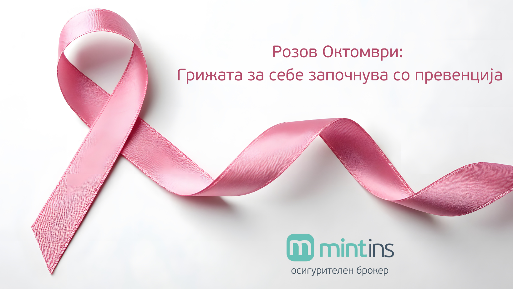 умот. Овој Октомври нека нè потсети дека љубовта кон себе е најубавата форма на сила. А Минт Инс е тука за да ве поддржи на тој пат, со осигурување што ви овозможува здравје, сигурност и поддршка секој ден. Овој Октомври направете го најважниот чекор кон превенција на рак на дојка. Октомври нека биде ваш потсетник дека љубовта кон себе започнува со една едноставна одлука, да се грижите за своето здравје. Со Минт Инс, имате партнер што стои зад вас, што ви овозможува пристап до најдобрите здравствени услуги и ве потсетува дека превенцијата не е трошок, туку инвестиција во иднината. Време е да размислите за себе. Изберете приватно здравствено осигурување преку Минт Инс и направете го првиот чекор кон превенција на рак на дојка во овој розов месец.