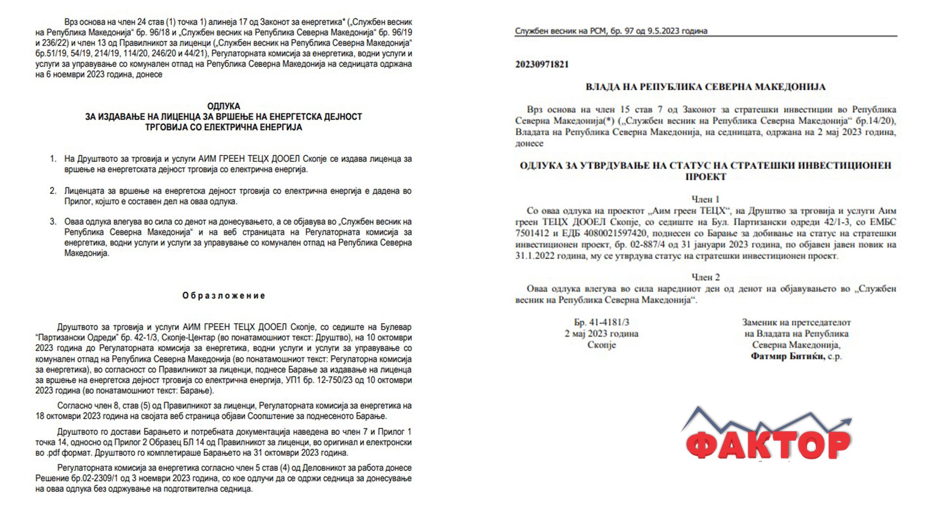 Фактор се обиде да стапи во контакт со поранешниот вицепремиер и актуелен пратеник од СДСМ, Фатмир Битиќи со чиј потпис „АИМ Греен Тецх“ стана стратешки партнер, но тој не одговори на нашите повици. Одговор не добивме ниту од владата, каде за овој стратешки проект испративме прашања пред речиси два месеци.