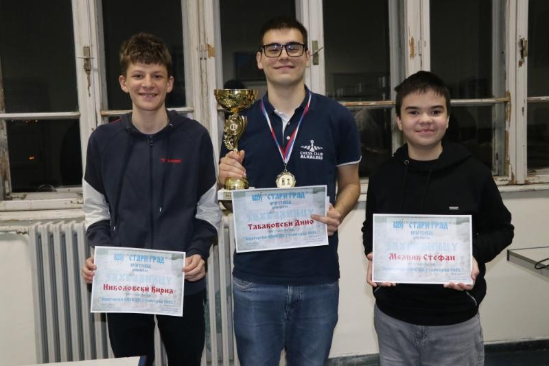 - Веќе третпат играм на турнирите во Крагујевац, но оваа година дојде до израз континуираниот напредок во работата со мојот тренер, велемајсторот Јаќимовиќ. Откако минатиот месец, заедно со уште еден младинец од напредната група на школата во ШК Алкалоид, учествував на најквалитетното Европското индивидуално првенство во шах, кое се играше во Врњачка Бања, сега со зголеменото ниво на самодоверба и, дополнително, со вистинските совети од мојот тренер успеав да стигнам до првото место. Јасно е дека сезоната на шах допрва почнува, па очекувам до крајот на годината да настапам на разни државни шампионати, а се надевам и дека резултатите нема да изостанат – рече Табаковски, кој минатата година на Европското првенство за аматери се закити со трофеј за второ место во категоријата на играчи до 1.700 рејтинг-поени.