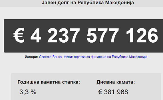На секој граѓанин му „виси“ долг од 2.088 евра?