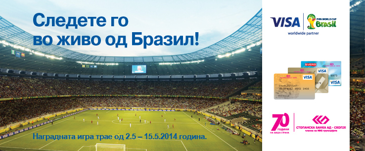 Во периодот од 02.05 - 15.05.2014 година сите кои користат VISA кредитни картички од Стопанска банка АД – Скопје имаат можност да станат потенцијален добитник на патување во Бразил за 2 лица и посета на натпревар од Светското првенство во фудбал.