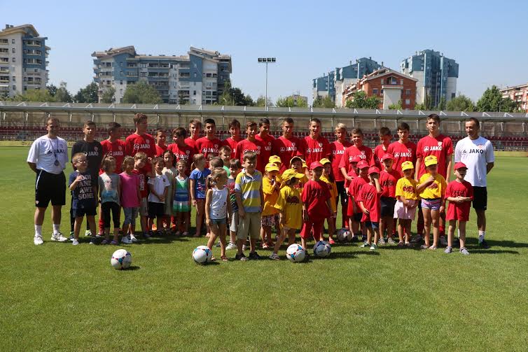 Дечињата од двете скопски градинки на еден од четирите терени го посетија тренингот на младите фудбалери од Академијата на ФФМ, ги видоа и се запознаа со условите во кои работат и се организираат тренинзите, го посетија фитнес центарот, одделот за складирање и чување на целокупната опрема, потоа работните простории на администрацијата и на селекторите во националните тимови.