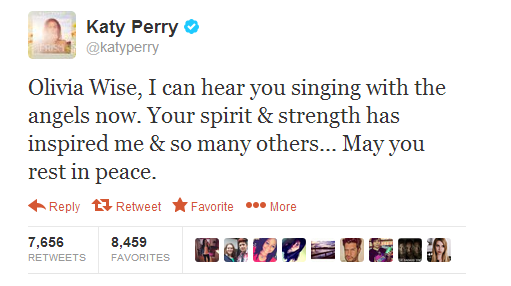 Оваа година таа му го одзеде првото место во рангирањето наБибер . За разлика од Лејди Гага и Ријана таа не влегува во расправии со следбеници. Ова е најпопуларниот нејзин твит за годината: