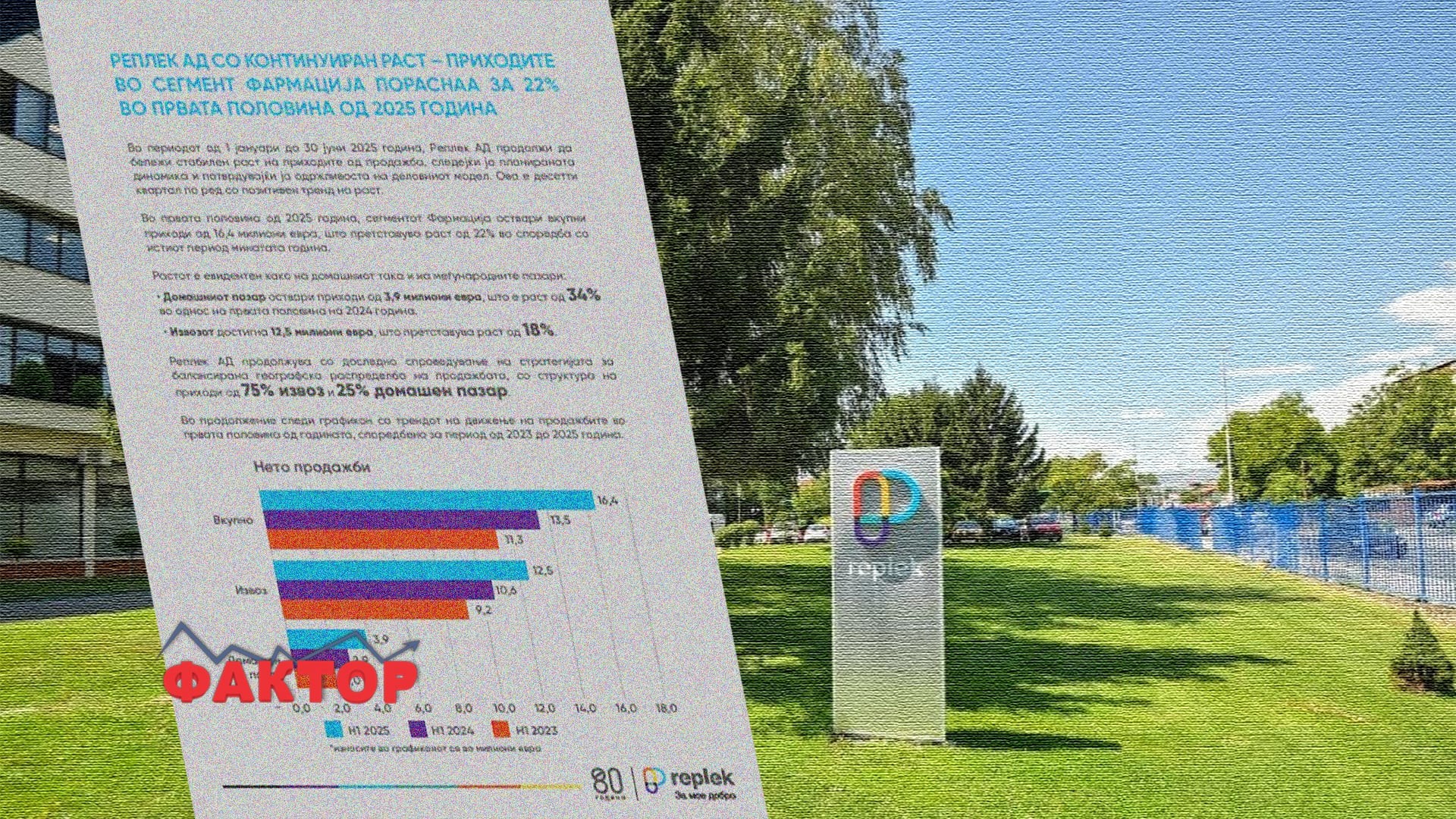 Реплек исто така информираше дека првите девет месеци од годинава ги заврши со силен раст на приходите во сегментот Фармација од 18 отсто во однос на истиот период од минатата година.