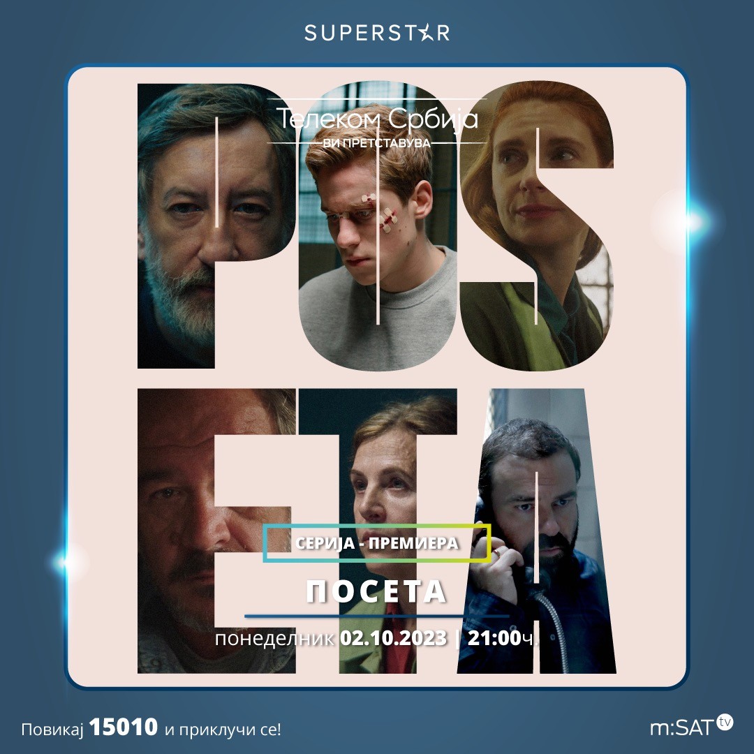 Од 2 октомври ексклузивно на Суперстар каналот, ќе може да уживаме во новото актерско остварување на една најпознатите македонски актерки, Камка Тоциновски која толкува една од улогите во новата серија од продукцијата на Телеком Србија, „Посета“. Серијата е составена од четири различни приказни инспирирани од вистински случувања, сите сместени меѓу ѕидовите на еден истражен затвор, со што ветува дека ќе ги задоволи вкусовите на најпребирливите љубители на добрите драмски трилери.