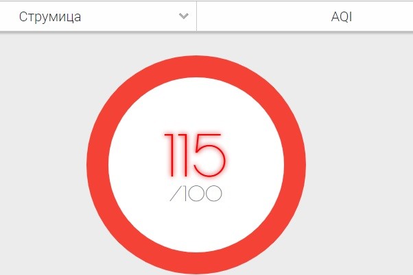Moj воздух, вечерва во Струмица регистрира 115 ПМ честички на 100 микограми.