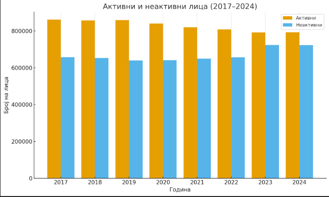 Значи дека за седум години бројот на активно население, односно луѓе кои се вработени или бараат работа се намалил за речиси 68.000 или околу 8 отсто. Истовремено расте и бројот на неактивни лица во овој период, односно за околу 10 отсто за последните седум години.