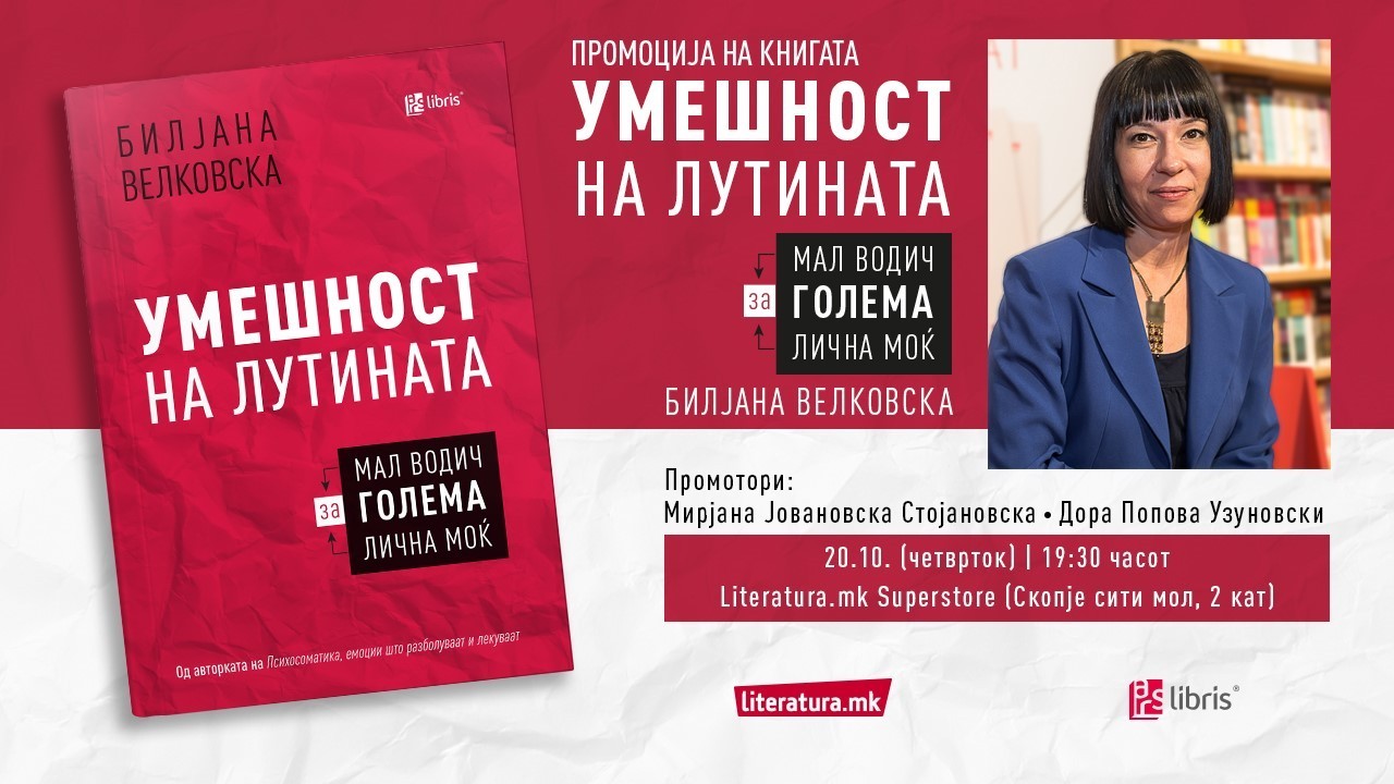 Новиот водич за голема лична моќ „Умешност на лутината“ од Билјана Велковска ќе биде промовиран во „Литература.мк“ во „Сити мол“